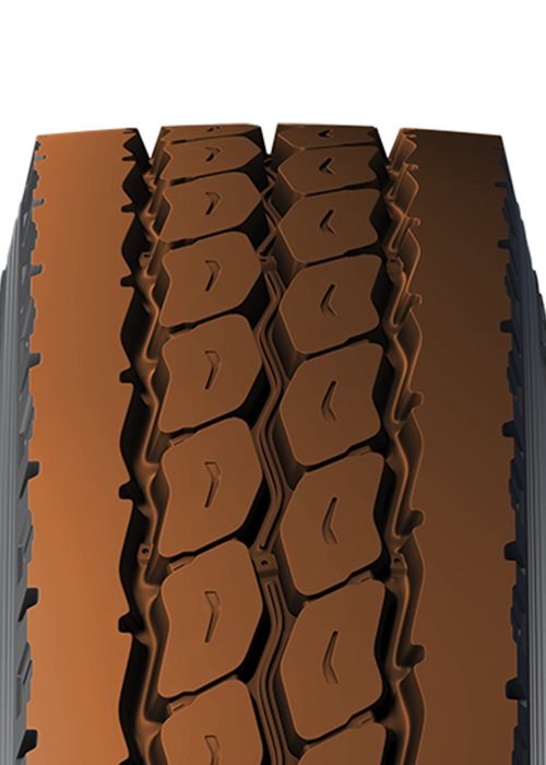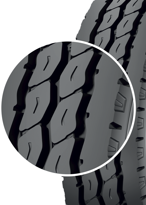 • Banda de rodagem com sulcos mais largos, com maior aderência em pisos secos e molhados, proporcionando melhor drenagem da água e lama.